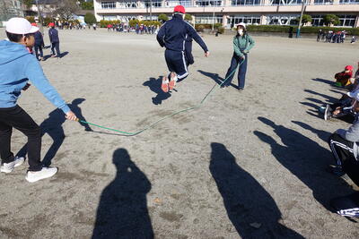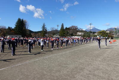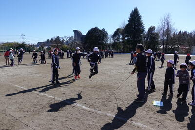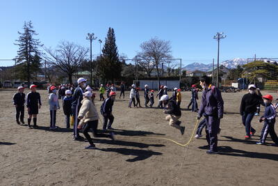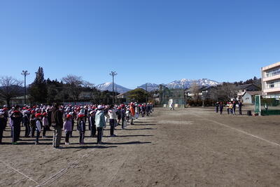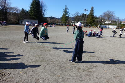 2月16日(木)の昼休みに校内長縄跳び大会がありました。これまで二宮班で楽しんできた長縄を大会として行いました。空気が澄み渡り男体山がきれいに見える中、とても気持ちよく長縄に取り組むことができました。