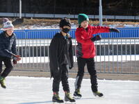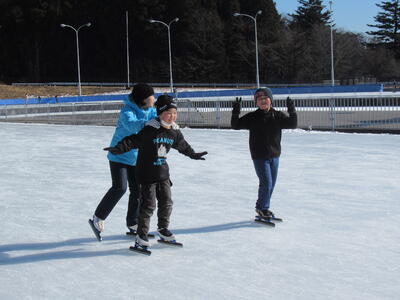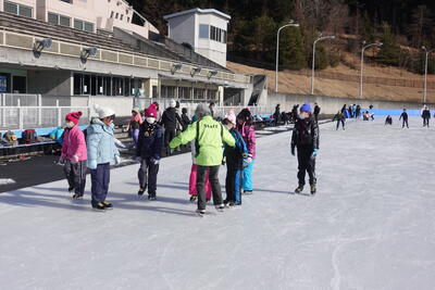 このスケート教室のために、子どもたちの靴ひもしばりのお手伝いに多くの方にお越しいただき、また、市から講師として石川先生と湯澤先生に指導をしていただきました。そのおかげで子どもたちはしっかりとスケート靴を履くことができ、またどんどんスケートが上手になっていきました。お越しいただいた皆様、本当にありがとうございました。