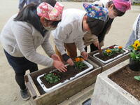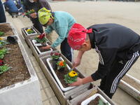 先週の金曜日、学校への貢献のひとつとして昼休みに6年生全員で花を植えました。
