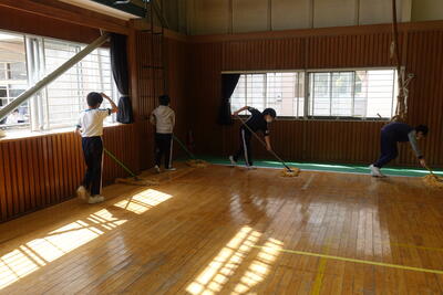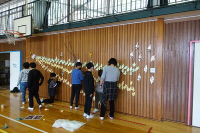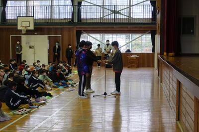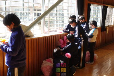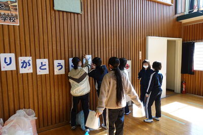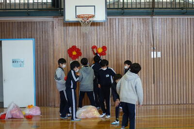 明日3月1日が6年生を送る会となります。いよいよ卒業に向けての時期にさしかかります。今日2月28日の昼休みに5年生と代表委員、4年生の有志で送る会の準備とリハーサルを行いました。