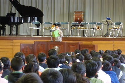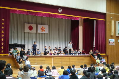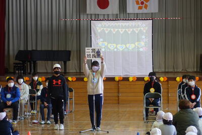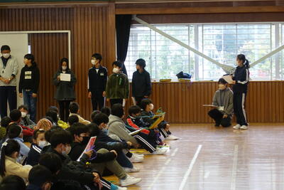 2年生の菊地さんの児童代表発表では、2学期にあいさつや持久走大会、吹奏楽部で頑張ったことを発表していました。また、3学期には自主学習や漢字、友達と仲良くしたいとしっかりと発表していました。