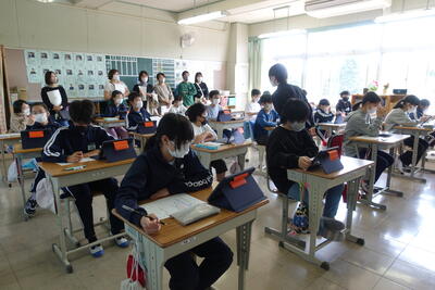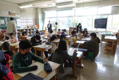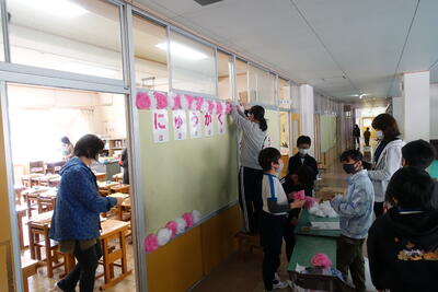 2月22日(水)に授業参観がありました。今回も検温と手指消毒のご協力をいただきました。