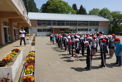 5月17日(金)の広場の時間に、今年度初めての朝会がありました。どの学年も落ち着いた態度で集合し、静かに整列することができました。星野校長先生からは、今一番の学校であるためには、相手のことを考えて、相手意識(相手を見る)をもって、あいさつをしっかりとしてほしいとお話しをいただきました。また、あかるく、いつも、さきに、つづけて、魔法の言葉を使ってほしいとお話しされました。最後に、笑顔あふれる学校のために魔法の言葉をお願いしますと校長先生からお話しされると、全校生が「はい。」と元気よく返事をしているのがとても印象的でした。