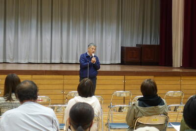 まず、渡邉PTA会長と星野校長のあいさつ、文挾教頭からお知らせがありました。渡邉PTA会長からは、お子さんたちに楽しんで学校に来ている雰囲気を作ってほしい。そのことで子どもたちが毎日楽しく学校に行けるとお話ししていました。星野校長からは、昨日遠足があり、朝は雨だったが子どもたちのパワーで晴れたこと、(今市にかけて)今一番の学校を目指していることを話されました。文挾教頭からは、6月8日(土)に地域合同奉仕作業を行うこと、その後ハートフルフェスタを計画していることを話されました。