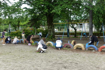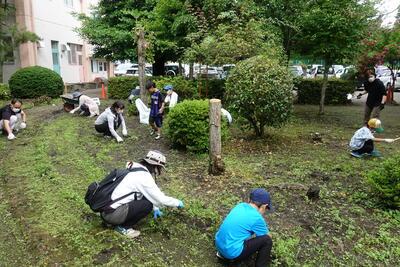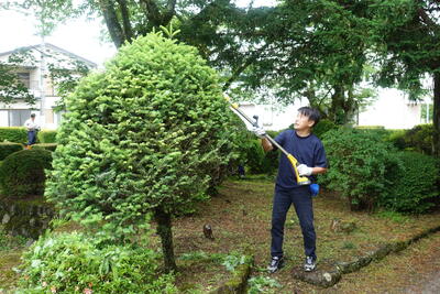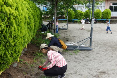 6月10日(土)奉仕作業が行われました。空はからっと晴れて熱中症が心配されましたが、時折吹く風が涼しく、とてもよい環境の中実施することができました。今回は地域合同での奉仕作業ということで、保護者や地域の方々、多くの子供たちに参加していただきました。