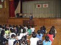 本日、3年生に転入生が来ました。特に3年生の子どもたちは心待ちにしていたようです。カナダから来た男の子です。(日本人です)カナダ育ちということで、英語が話せます。今日は一斉下校だったので、全校生に紹介しました。全員で「さようなら」をすると、早速転入生に駆け寄り、話しかけていました。学校生活に少しずつ慣れることでしょう。子どもたちが応援してくれることと思います。