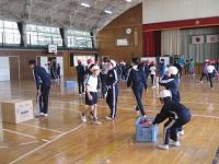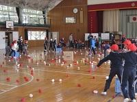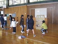 広場の時間に、スポーツイベント委員会が集会を開催しました。種目は「段ボールポンポン」です。5人一組でチームを作り、2組の対抗戦でゲームをします。2組の中央にある段ボールに球を当てて相手方に動かすというゲームです。大いに盛り上がっていました。この企画を立て、運営した委員会の子供たちは今一番輝くことができたと思います。