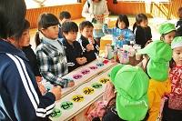 1年生の生活科で、昔の遊びに親しむ学習があります。8日には2年生が1年生の教室を訪れ、昔の遊びを教えました。教えたのは、おはじきやあやとり、コマ回し、竹馬などです。1年生に寄り添い、教える2年生がとても頼もしくお兄さんお姉さんに見えました。1年生も2年生も笑顔が輝いていました。