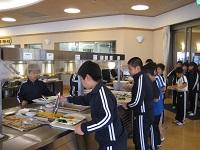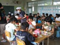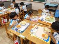 今日の給食は、地産地消献立でした。食材は、日光市産のぶた肉です。手作りの大きなとんかつでしたが、子供たちは口を大きく開けてもりもり食べていました。