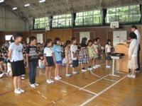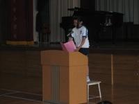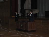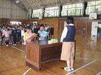 10月1日に着任した非常勤講師の黒川先生と、本日で終了する教育実習生2名が、朝会で全校生にあいさつしました。「3年生とがんばります。」「先生になって恩返しします。」「思い通りにならないこともあると、勉強になりました。がんばります。」とそれぞれあいさつをしました。子供たちとともにがんばってほしいものです。教育実習生は、この経験を生かし、大学での勉強をがんばってほしいものです。