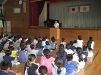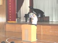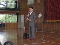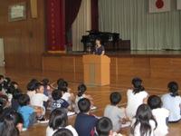 今年度から、道徳集会を開催することにしました。外部講師をお招きし、お話を伺い、その方の道徳的な生き方に触れることをねらいとしています。今回は第1回ということで、講師として前PTA会長の長谷川敬様をお招きし、お話を伺いました。長谷川様は薬局を経営されていますが、勤務する方々に3つのことを伝えているそうです。それは、「あいさつ」「掃除」「思いやり」だそうです。相手を認めたり尊重したりすることが大切だと考えているからだそうです。そして、子供たちに「恥ずかしくてもあいさつしよう」と語りかけてくださいました。また、「徳」についてもわかりやすく話してくださいました。子供たちもしっかり話を聞いていました。子供たちの心に届いたことと思います。