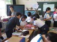 6年家庭科ミシン「エプロンづくり」 学習ボランティア
