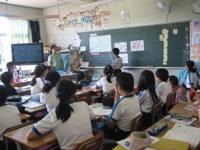広場の時間に、講師として六斎市を主催している古峯さんをお迎えし、お話を伺いました。はじめに本校の卒業生であり、PTAの活動をしていると自己紹介してくださいました。次に、「まちづくり活動」を始めたきっかけを話してくださいました。子供の頃にあった映画館がなくなり、盆踊りや七夕などのお祭りもなくなり、寂しさを感じ、「町を元気にしたい」「未来に元気な町を残したい」と考え、「まちづくり活動」を始めたそうです。そして、現在、六斎市を開催し、「赤ちゃんハイハイ大会」や「てるてる坊主まつり」などの活動を実施しています。ちなみにてるてる坊主祭りには、ワールドクラブの子供たちが出品し、優秀賞をいただきました。11月20日には、「焼きそば祭り」を開催するそうです。まとめに、子供たちへのメッセージとして、「日光が好きだ。今市に住みたい。子供は今小に通わせたい。」という大人になってほしい。この町を誇りに思ってほしい。・・・と伝えてくださいました。