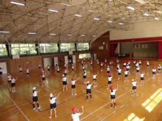 今日から、持久走の練習を始めました。はじめに学級ごとに準備運動をしました。軽快な音楽がかかり、スタートです。練習コースは、1・2年、3・4年、5・6年と準備しています。朝、教員と委員会の児童とで、ラインを引きました。子供たちは、自分の体調やペースに応じて、走りました。コースを歩く子もいました。教員も子供の様子を見ながら、走っていました。ゆっくりとした音楽に変わると、歩いて自分たちの集合場所に戻ります。最後に整理運動をして練習が終わります。保護者の皆様には、毎日体温測定と体調確認でお世話になります。