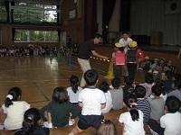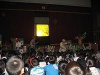 今年も図書ボランティア「スマイルスマイル」の皆様が、全校生に読み聞かせをしてくださいました。今年は影絵劇です。演目は、宮澤賢治の「注文の多い料理店」です。本校の教員も2名参加しました。ステンドグラスのようなカラーの影絵や手を使った影絵、人物の影絵など、多彩な影絵劇に子供たちも集中して鑑賞していました。終了後には、ボランティアの皆様からごあさいつをいただき、多くの方々が参加して作り上げていることがわかりました。また、影絵の舞台裏も見せていただき、小道具などに興味津々でした。宮澤賢治の本も展示され、多くの子が興味深そうに見ていました。