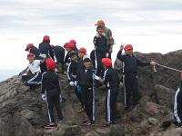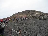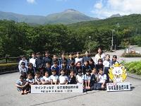 4年生が宿泊学習で那須に行ってきました。はじめに茶臼岳に登りました。ロープーウェイで山頂駅まで行き、茶臼岳の山頂を目指しました。山頂では記念に写真を撮りました。次に昼食です。少し開けたところでお弁当をいただきました。小雨が降ってきたので、カッパを着て下山しました。途中、「ヤッホー」と山びこを楽しんだり、山の景色を楽しんだりしました。子供たちは一人もけがなく、全員無事に下山しました。
