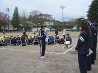 本日から、大学生2名が、本校で教育実習を行います。2名とも本校の卒業生で白鴎大学の3年生です。4年と5年で実習します。期間は9月20日から10月14日までの4週間です。広場の時間の臨時朝会で自己紹介し、あいさつしました。4週間がんばってほしいものです。