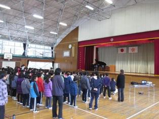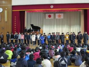 全校合唱「花は咲く」 3年生のリコーダー演奏 4年生の合唱