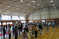 晴天の中行われた大会。         多くの応援の方々。           開会行事を運営するスポーツイベント委員会。