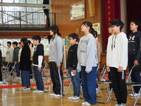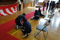閉会行事では、「そうきんレース」の表彰をしました。10~3位の子どもには、入賞バッジが贈られ、2位の5年生若林さんと優勝者の5年村上さんにはバッジと共に鉄球?が贈られました。