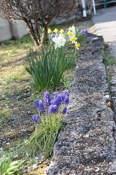 学校花壇には、水仙の花が咲きました。
