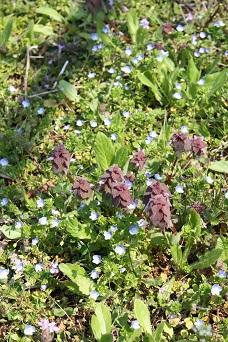 学校農園には、たくさんのオオイヌノフグリが咲いています。