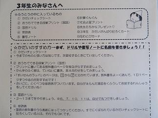 3 6年生については、28日にお渡しできなかった課題を3月11日に配付しますので御家庭で取り組んでください。