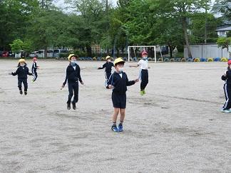 1年生にとっては初めての体育集会でしたが、2年生の動きを見ながら一生懸命参加していました。中学年、高学年もしっかりとした態度で参加していました。