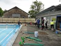 プールでの安全授業を行いました。