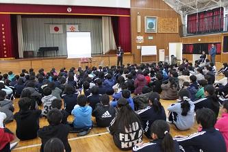 本校の長縄跳び大会は、縦割り班ごとに行うので、上級生が下級生に跳ぶタイミングや跳び方を優しく教えるなど、異学年交流のよさをかえりみることができました。