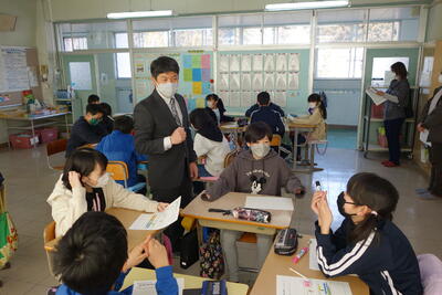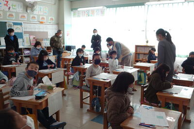 3月4日(金)に授業参観がありました。まん延防止等重点措置の中での実施のため、来校者全員に検温をお願いするとともに、参観時間を短くしていただく等の感染症対策をしっかりとした上で実施しました。それから、まず感心させられたのは、駐車場の車の並べ方です。本校の早田先生が誘導係をしていましたが、その指示に従って整然と並べられていました。