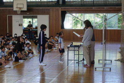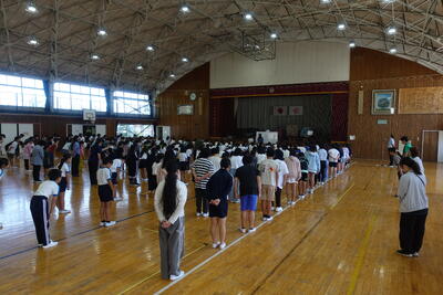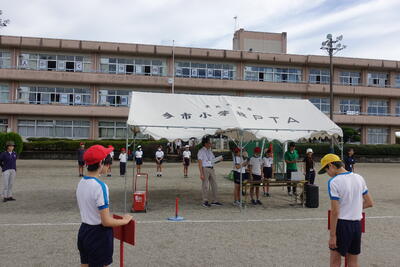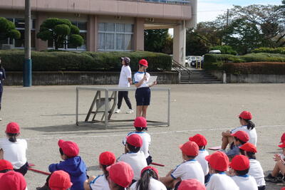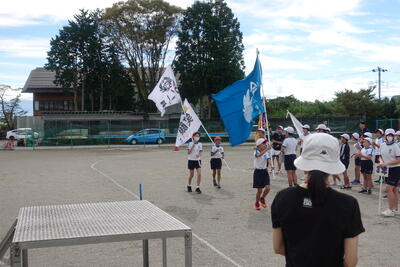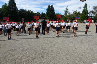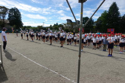 10月18日(土)の運動会に向けて、10月6日(月)から全体練習が始まりました。今日は、練習の心構え、入場行進、スローガン・ポスターの表彰、開会式の練習を行いました。子供たちは練習に真剣に取り組んでいました。