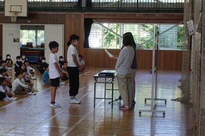 このお話をもとに、「あかるく いつでも さきに つづけて」のまほうの言葉であふれる学校にしていってほしいとお話しされました。