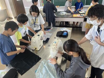 ボランティアさんには、ミシンの使い方だけでなく、まち針の刺し方やしつけ縫いの仕方も優しく丁寧に教えていただきました。ありがとうございました。