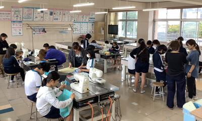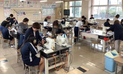 5,6年生の家庭科でミシンボランティアさんに来ていただきました。