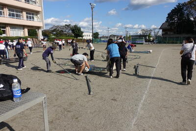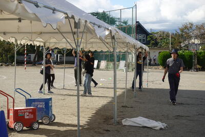 1~4年生は給食終了後下校し、5・6年生、PTA役員、保護者の皆様、ICMおやじの会、職員で準備をしました。多くの方々にお越しいただいたおかげで、スムーズに準備を進めることができました。
