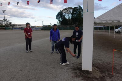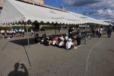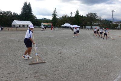 5・6年生は体育館や会議室から机といすを運び、テントの下に並べ、グラウンドの整備(ならし、石拾いなど)をしました。