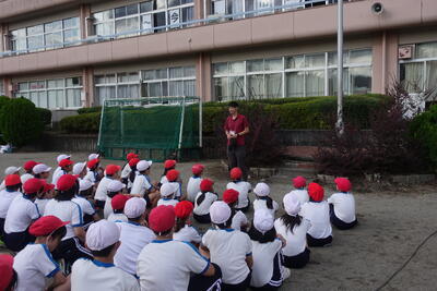 9月30日(火)に避難訓練がありました。今回の避難訓練は、大きな地震が起き、その後火災が発生したことを想定し、そのときの身の守り方について学習しました。今市消防署の方々にも講師としてお越しいただき、火災が起きた際に煙に対しての対応の仕方、消化器の使い方を教えていただきました。
