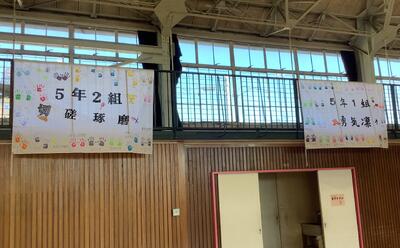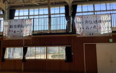 体育館には、運動会のソーラン節で使用した学級旗が飾られています!ソーラン節を踊るチーム夢のかっこいい姿が思い出されますね。