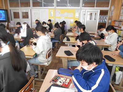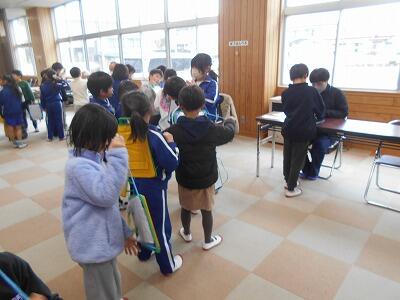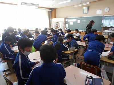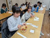 修了式前の一日となりました。各学級では荷物の整理や教室掲示物などの片付けが行われていました。学級活動として「お楽しみ会」実施している学級もありました。また、修了式を行う24日は給食がないため、今年度最後の給食になります。普段とは違う席順で楽しく食べている学級もありました。今日の様子を写真で紹介します。