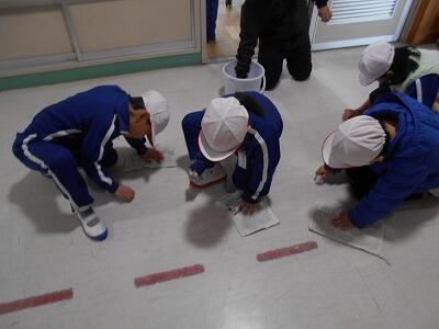 給食の後、昼休みは6年生が会場の片付けをしました。