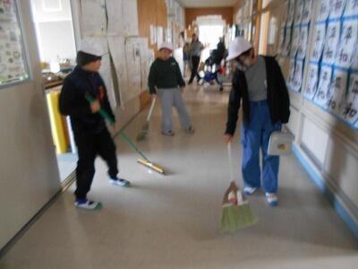 5年生による朝の清掃 教室の片付け 楽しみ会