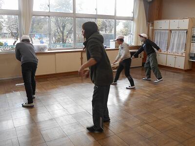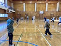 天気が不安定なのと、校庭のコンディションがよくないので体育館でおこないました。