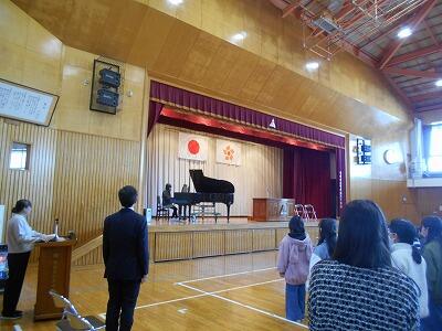 国歌斉唱は5年児童が初めて伴奏をしました。
