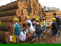6年理科、地層の学習。茶色いのは、火山灰の混じった土です。