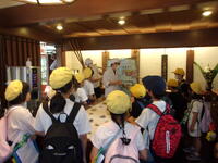 3年生総合「地域のじまんをしょうかいしよう!」の一環として、3年生児童から1・2年生に地域にある味自慢の食堂について発表していました。(1階オープンスペース)