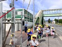 業間、運営委員会が登下校の安全を呼びかけるチラシを作っています。