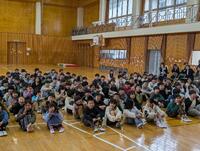 5年音楽、「邦楽スクールコンサート」。講師の方々が箏について教えてくださいます。
