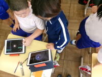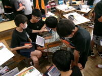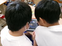 4年理科、星の学習。天体観測のアプリでいろいろな星を見てみます。