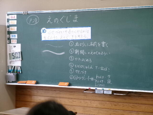 1年学活、運動会のスローガンを考えよう。学年の代表をみんなの投票で決めます。